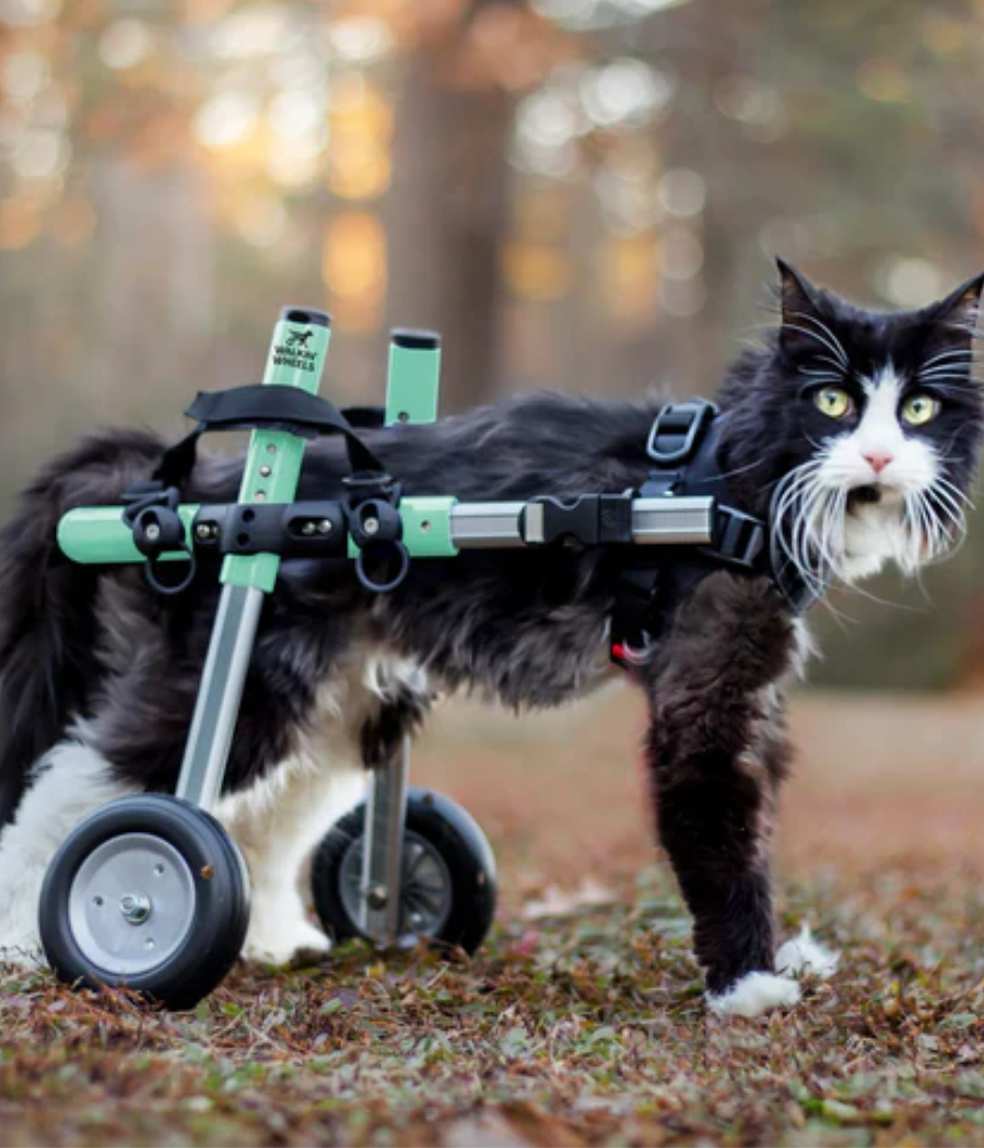 The Walkin’ Wheels Rear Cat wheelchair gives cats their mobility back!
