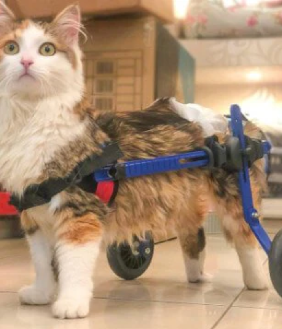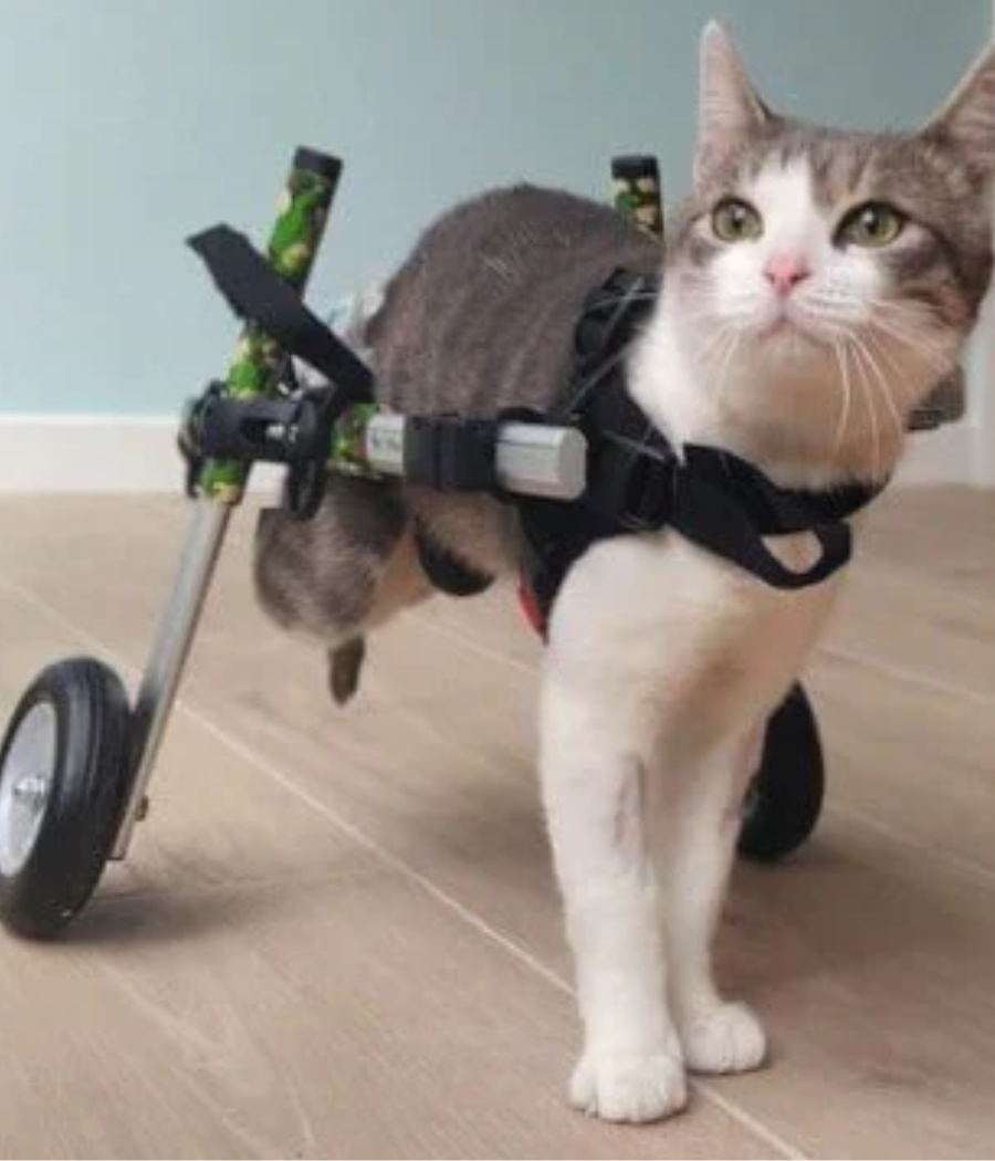 🐾 A front wheel attachment can be added for cats needing full limb support
