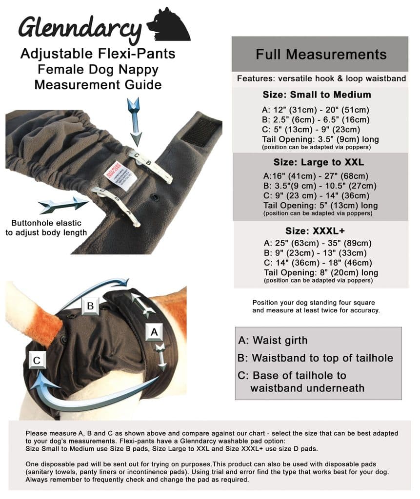 Female Dog Nappies (Flexi-Pants + 2 washable pads)