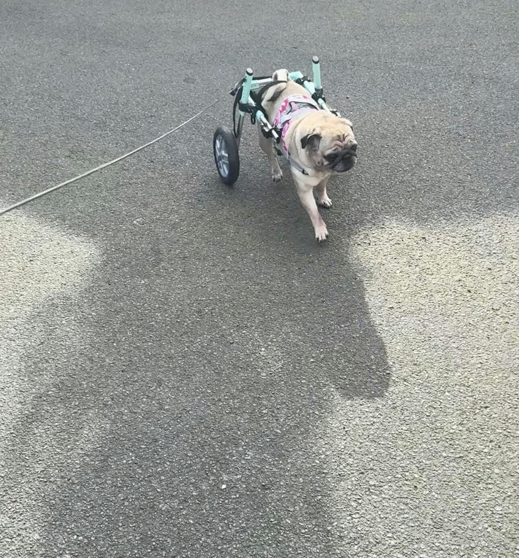 Brilliant harness dog seems to use his wheelchair a lot better seeing physio on Monday see if he has any tension in his neck which he did with the original harness that came with the wheelchair