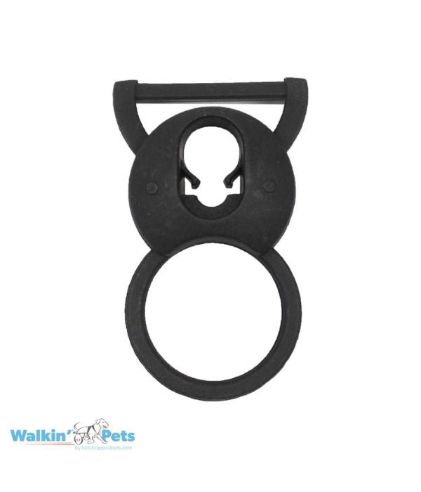 The Leg Ring Clip is used to secure the Walkin' Leg Ring to the Walkin' dog wheelchair frame.
