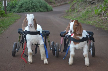 The Walkin' Wheels are made tough enough to take whatever your sheep or goat can dole out however we often recommend that you upgrade the harness to a Buddy-Up and also upgrade to a full Belly Support.