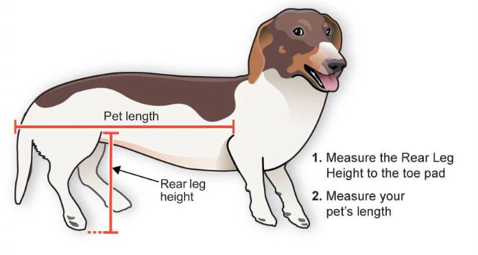 🐾 Measure the Rear Leg Height to the toe pad, ideally when your dog is lying down, as shown in the diagram. Do not pull the leg tight, but leave some natural bend