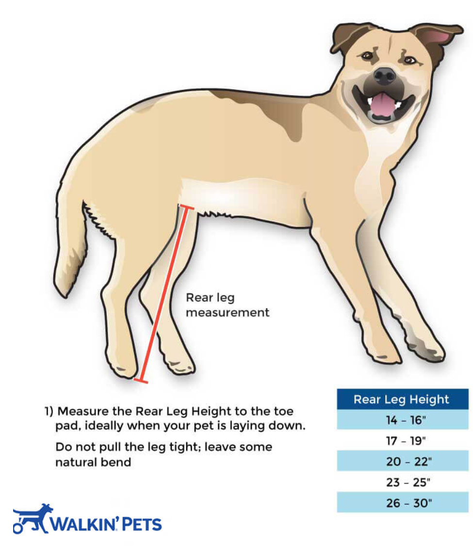 🐾 Measure the Rear Leg Height to the toe pad, ideally when your dog is lying down, as shown in the diagram. Do not pull the leg tight, but leave some natural bend