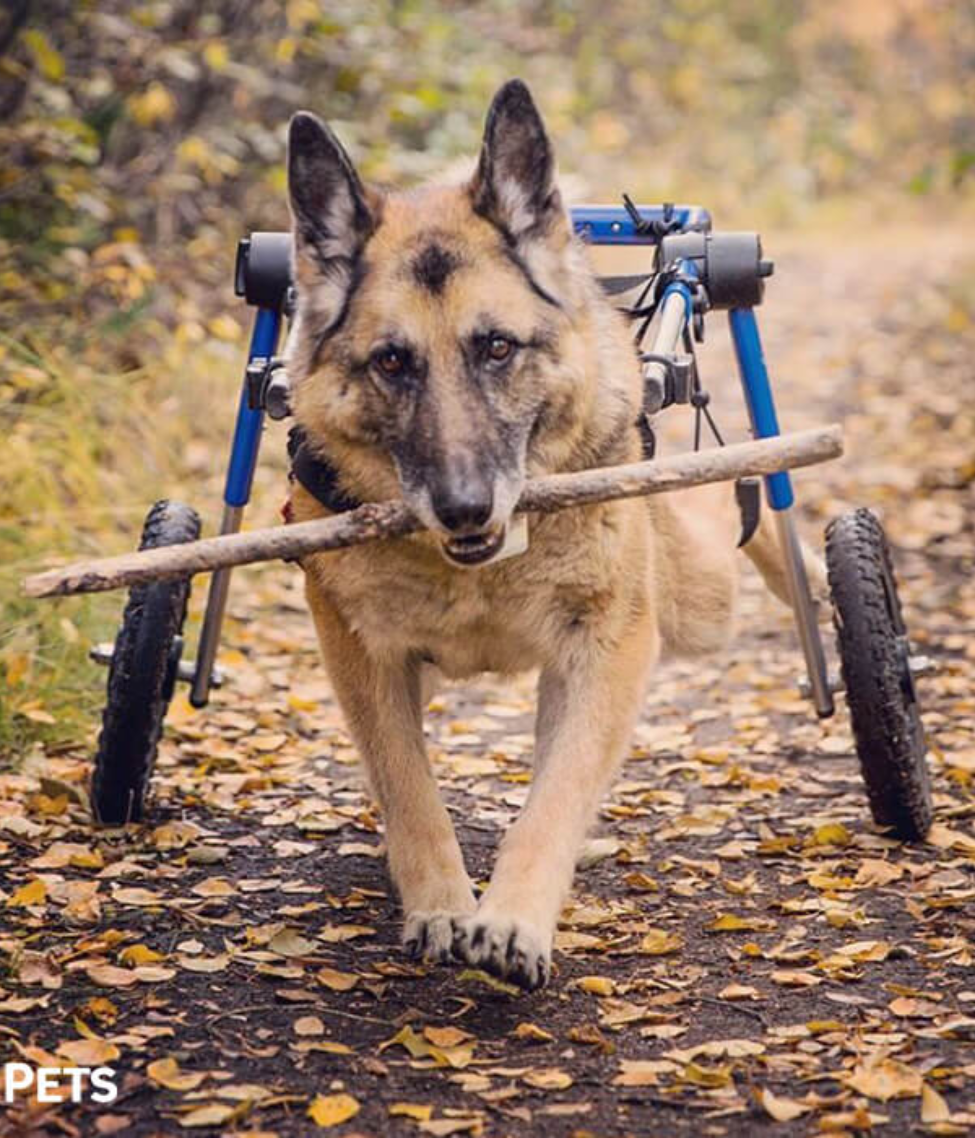 Whether your large dog is dealing with hind leg weakness from Degenerative Myelopathy, paralysis, general age-related weakness, cruciate injuries or joint pain, the Walkin’ Wheels will keep them moving!