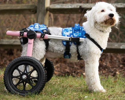 Is your dog struggling to walk or stand? Weakness in their back, hips or legs can be heartbreaking. But there's hope! Our dog wheels help dogs regain mobility and independence.