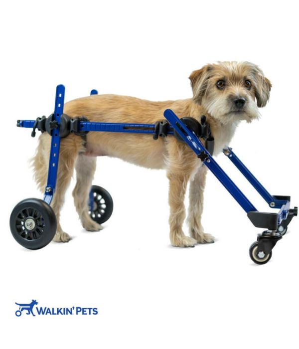Time to get your tiny dog up and out with the Walkin' Wheels MINI Quad dog Wheelchair. This wheelchair is best if your dog weighs less than 3.5kg or 8lbs.